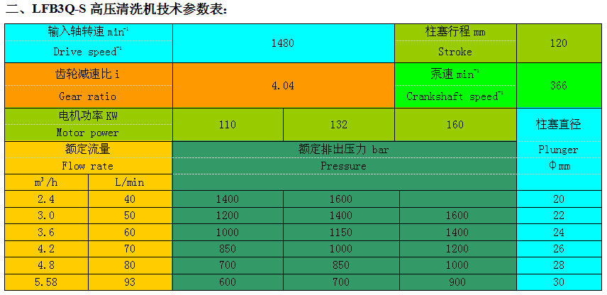 LFB3Q-S高壓清洗機技術參數表